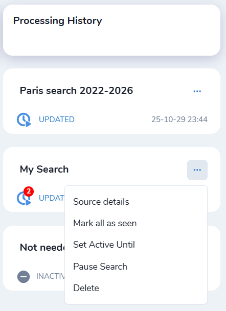 ❗️ If you rename the search - it will create a new search schedule with the new name instead of updating the existing one. If you only want to rename the search, simply click on its name.